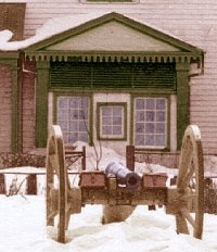 by trees and a large oval garden. Notice that a cannon points threateningly