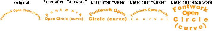 In this illustration the four columns demonstrates how the Fontwork object becomes modified by placing paragraph breaks after different words. The "Enter" of course represents a paragraph break.